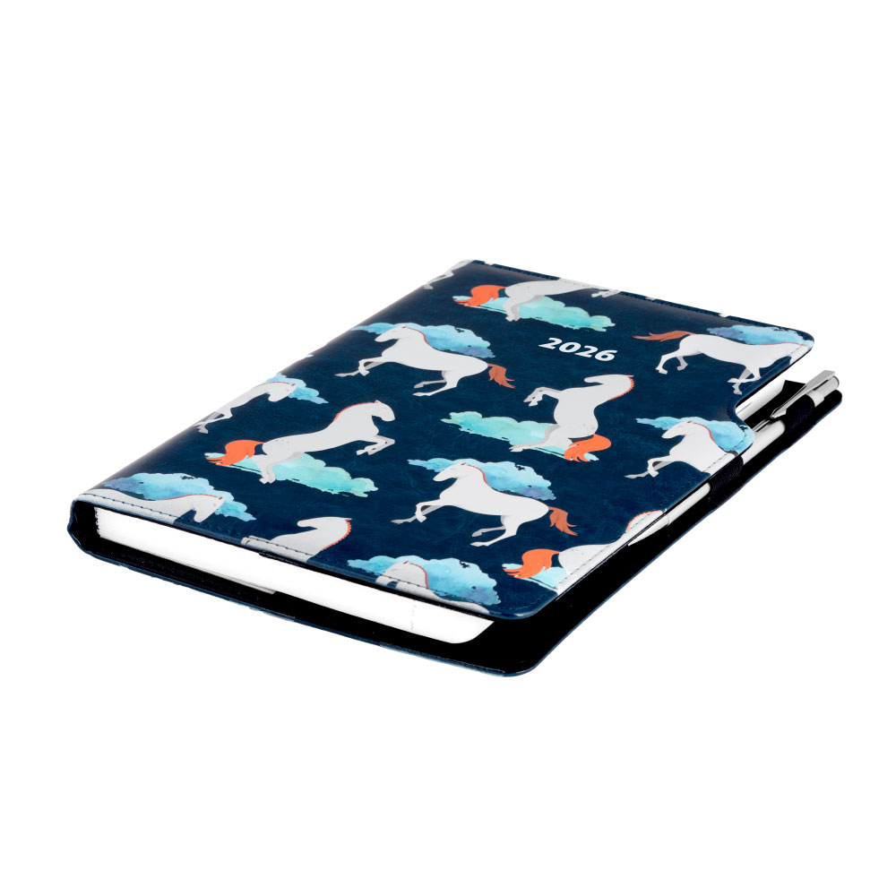 Diář DESIGN týdenní B5 2026 - modrý - koně