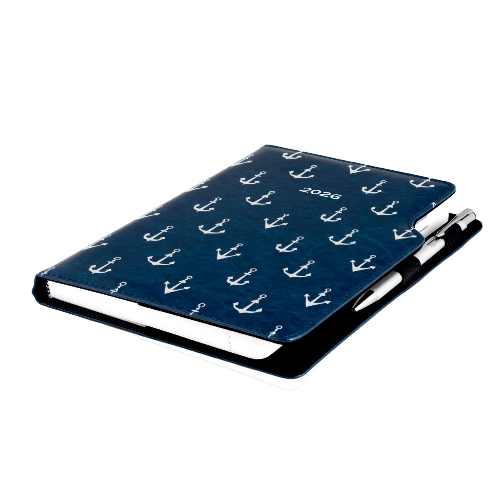 Diář DESIGN týdenní B5 2026 - modrý - námořník - kotvy