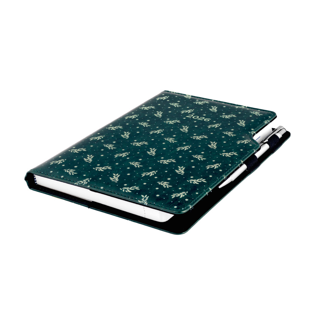 Diář DESIGN tydenní B5 2026 - zelená - Větvičky