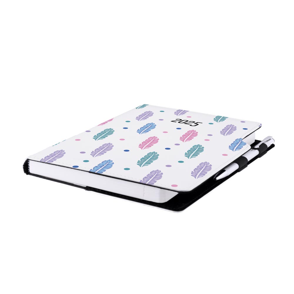 Diář obsahuje: kulaté odtrhávací rožky, bílou záložku a propisku