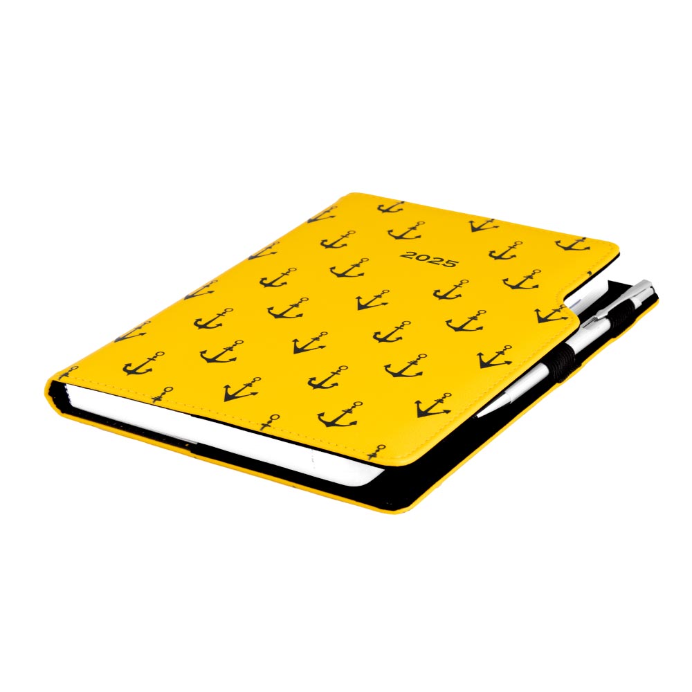 Diář DESIGN týdenní B6 2025 - žlutá - námořník - kotvy