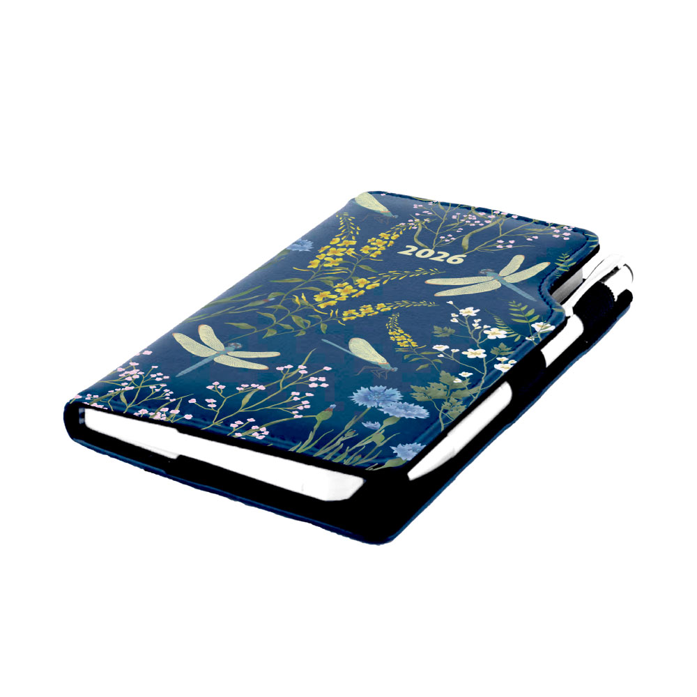 Diář DESIGN tydenní kapesní 2026 - modrý - vážky