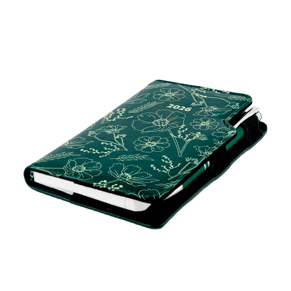 Diář DESIGN tydenní kapesní 2026 - zelená - Květiny