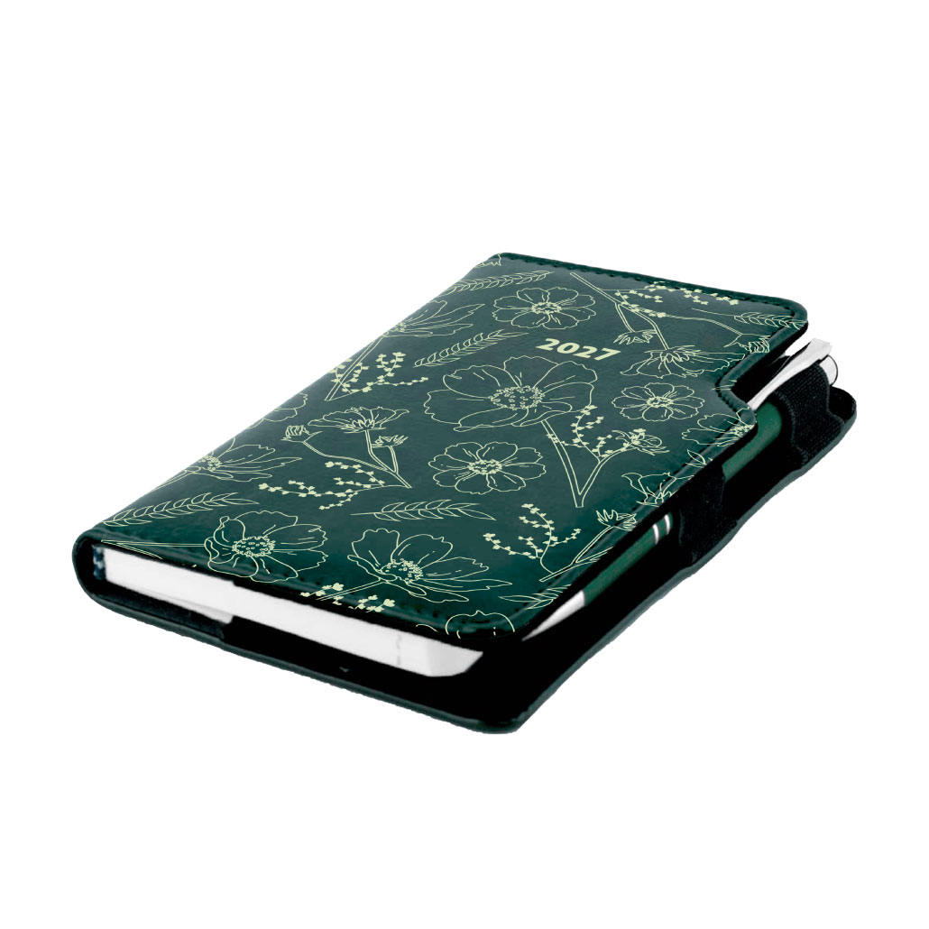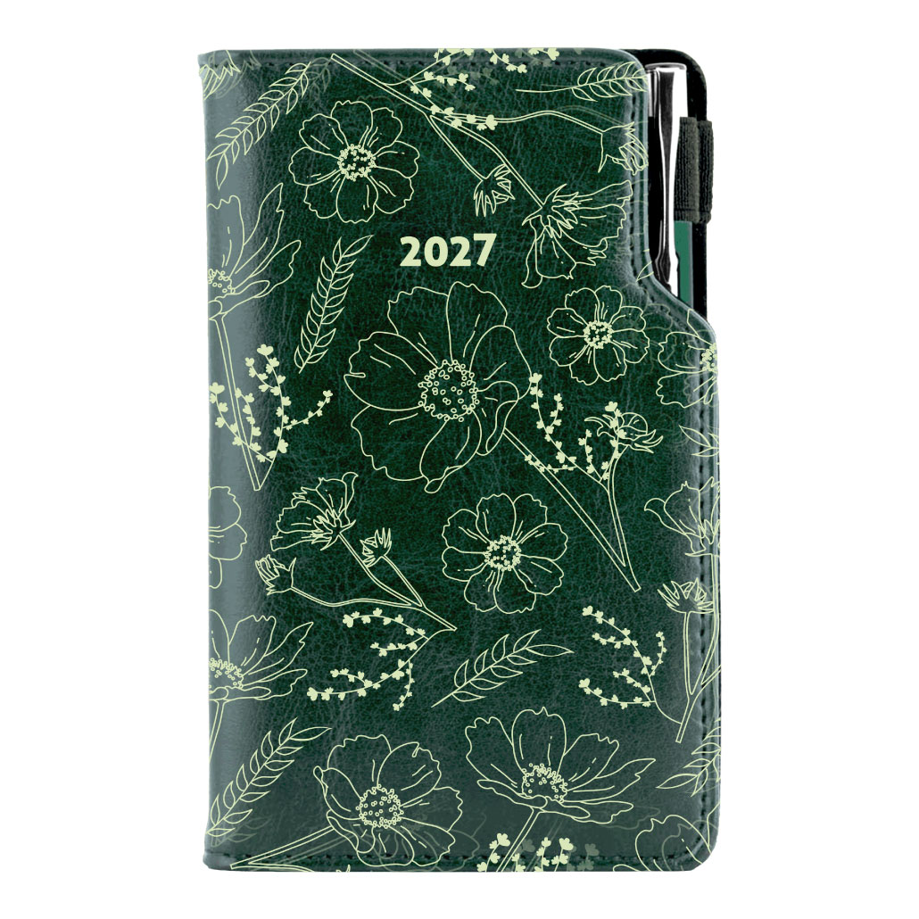 Diář DESIGN tydenní kapesní 2027 - zelená - Květiny