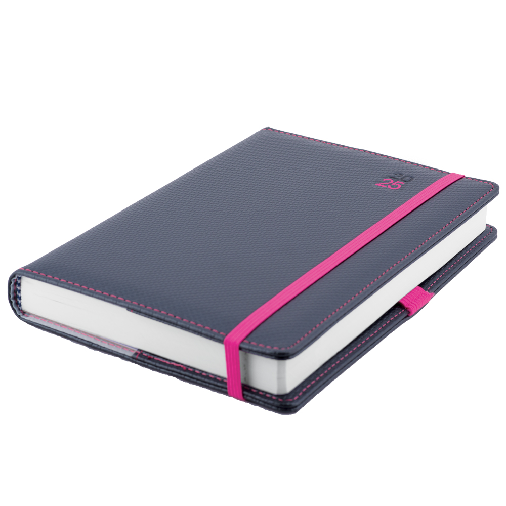 Diář ELASTIC denní A5 2025 český - grafit/magenta gumička