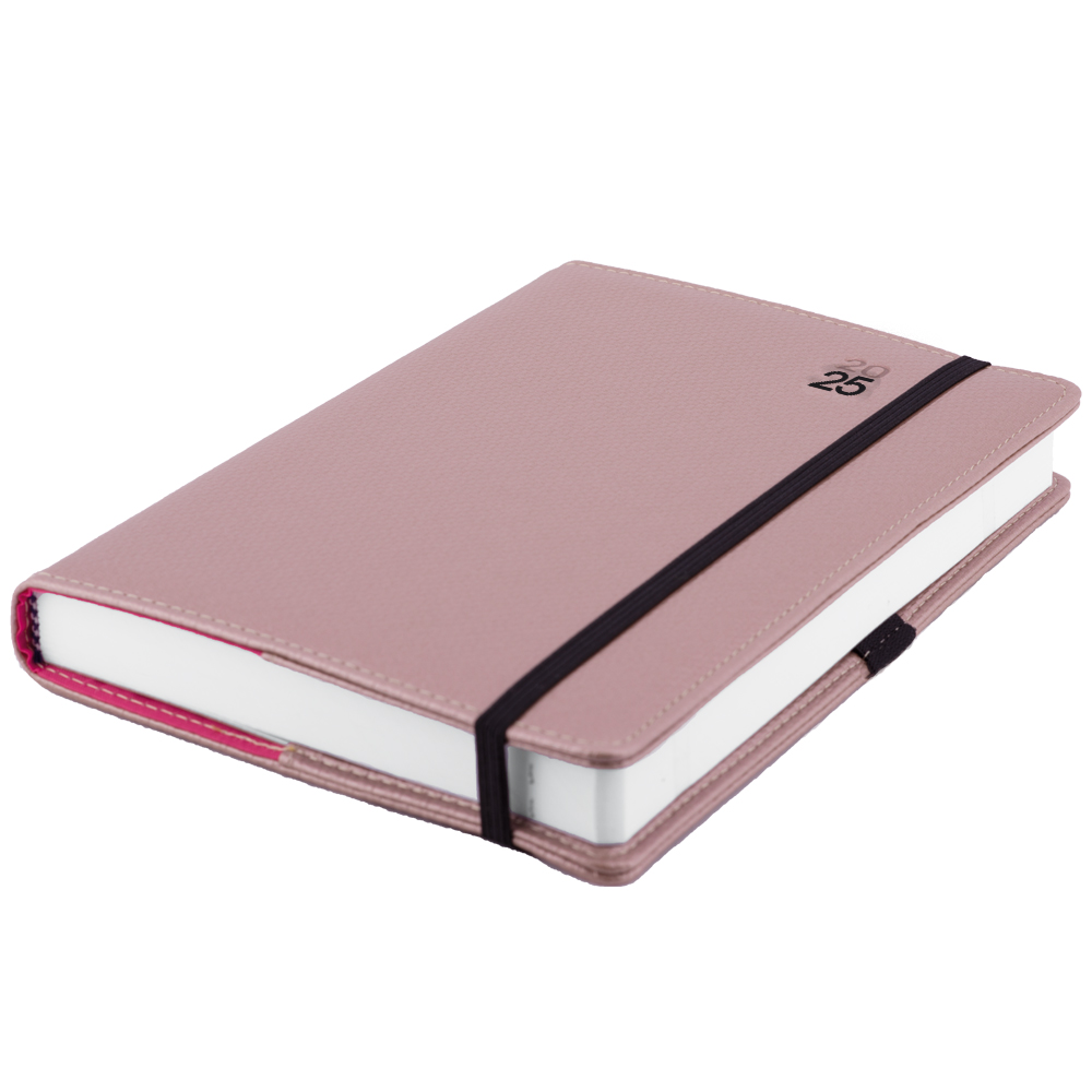Diář ELASTIC denní A5 2025 polský - pudrová/černá gumička