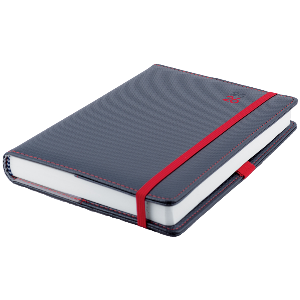 Diář ELASTIC denní A5 2026 polský - grafit/červená gumička