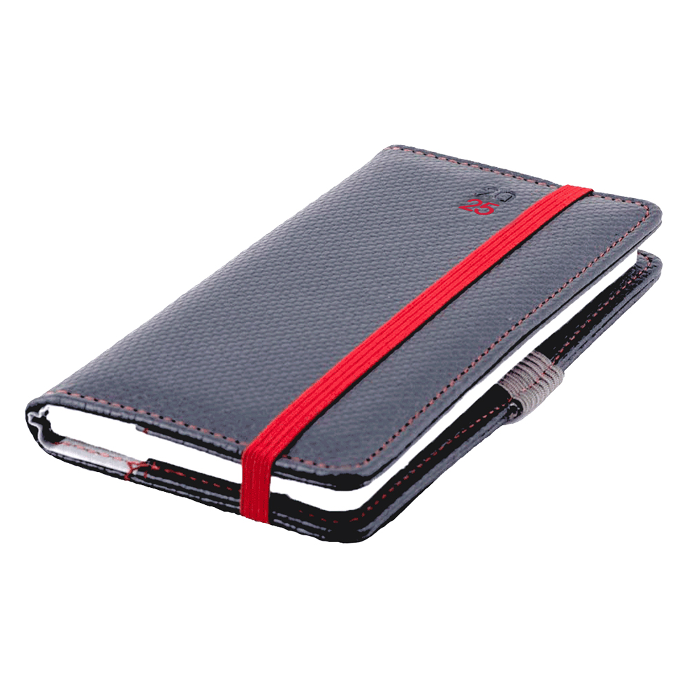 Diář ELASTIC týdenní kapesní 2025 český - grafit/červená gumička