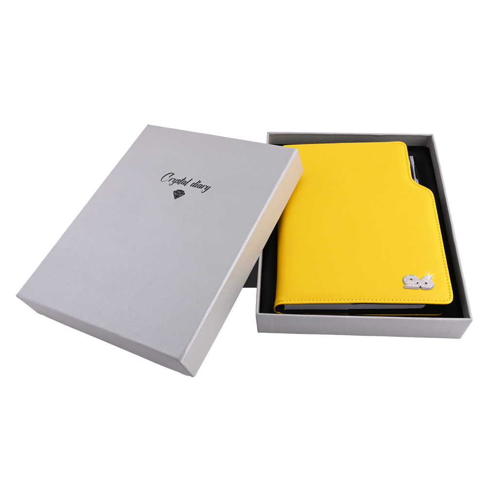 Diář je balen v dárkové krabičce vystalné saténem.
