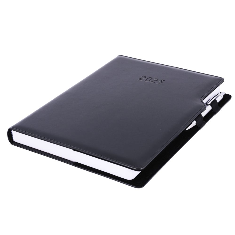 Diář GEP s propiskou denní A4 2025 - černá/černý vnitřek