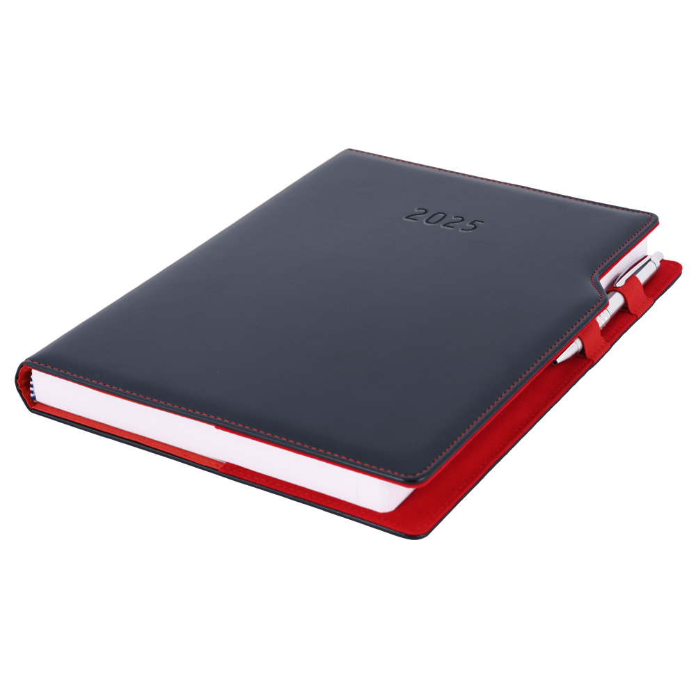 Diář GEP s propiskou denní A4 2025 - černá/červený vnitřek