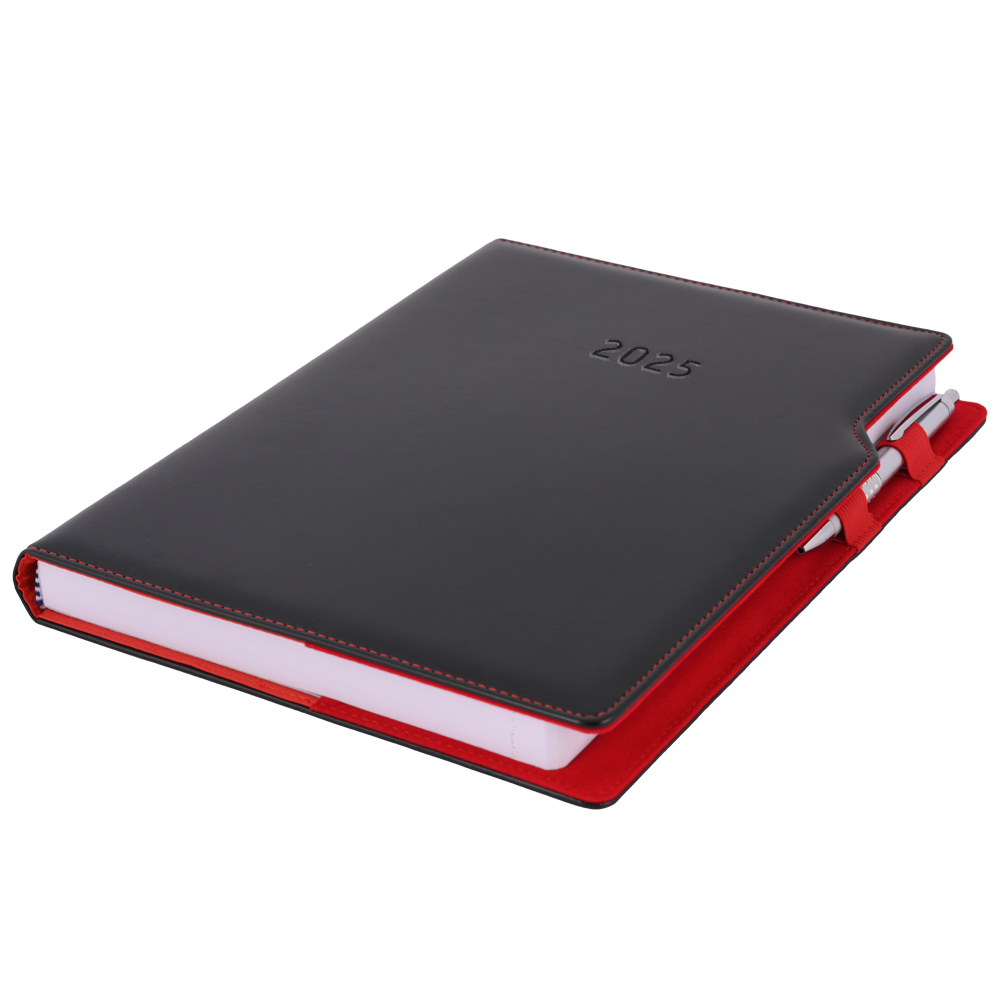 Diář GEP s propiskou denní A4 2025 polský - černá/červený vnitřek