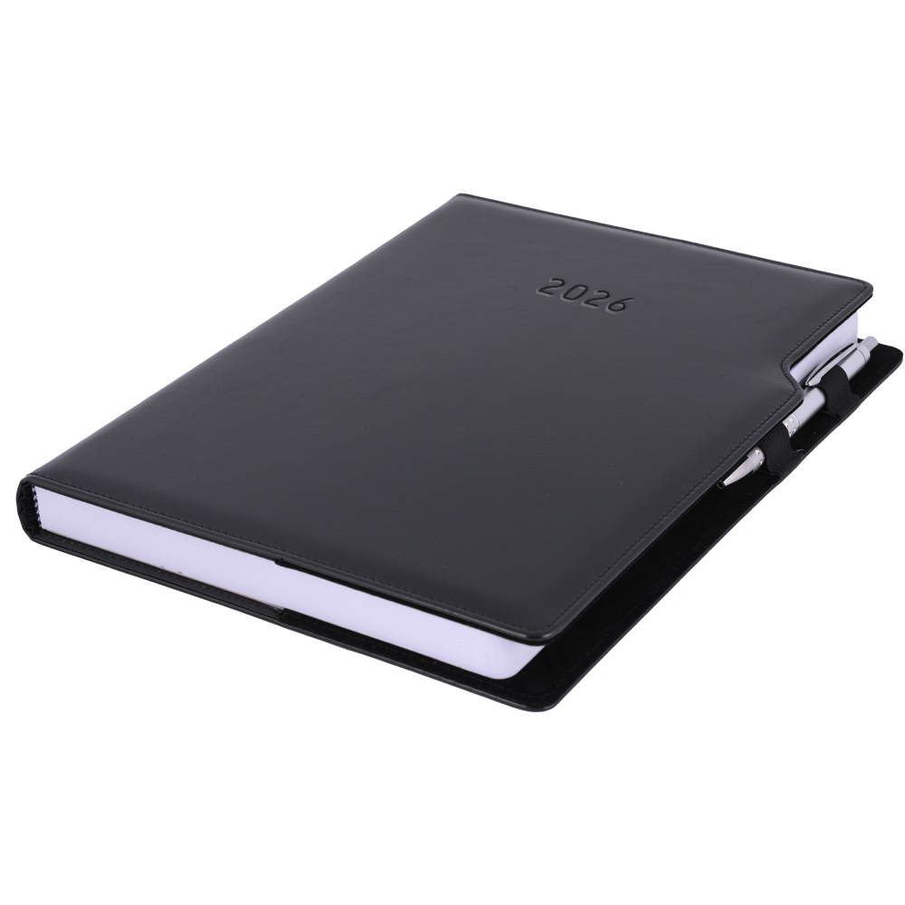 Diář GEP s propiskou denní A4 2026 - černá/černý vnitřek