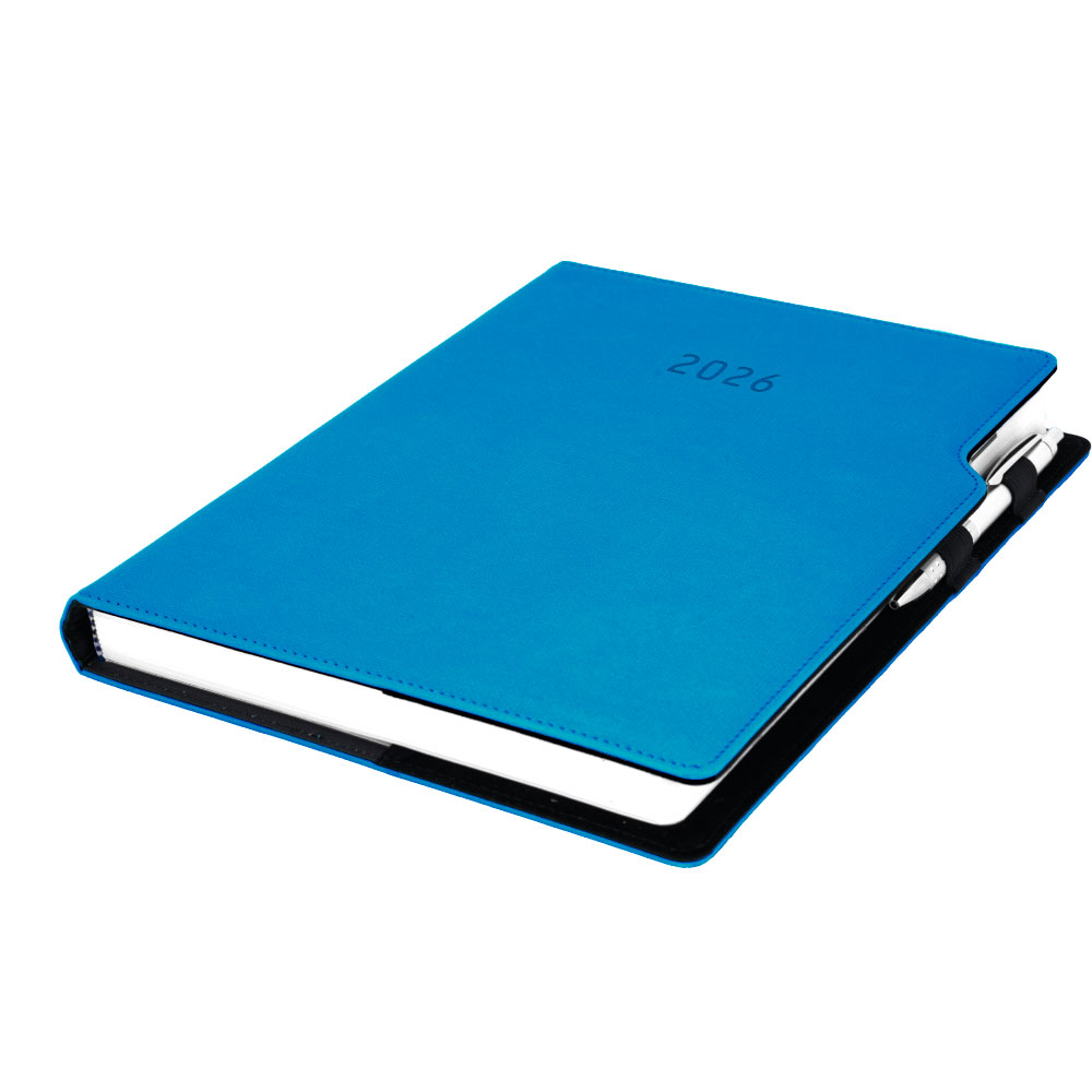Diář GEP s propiskou denní A4 2026 polský - modrá pastelová