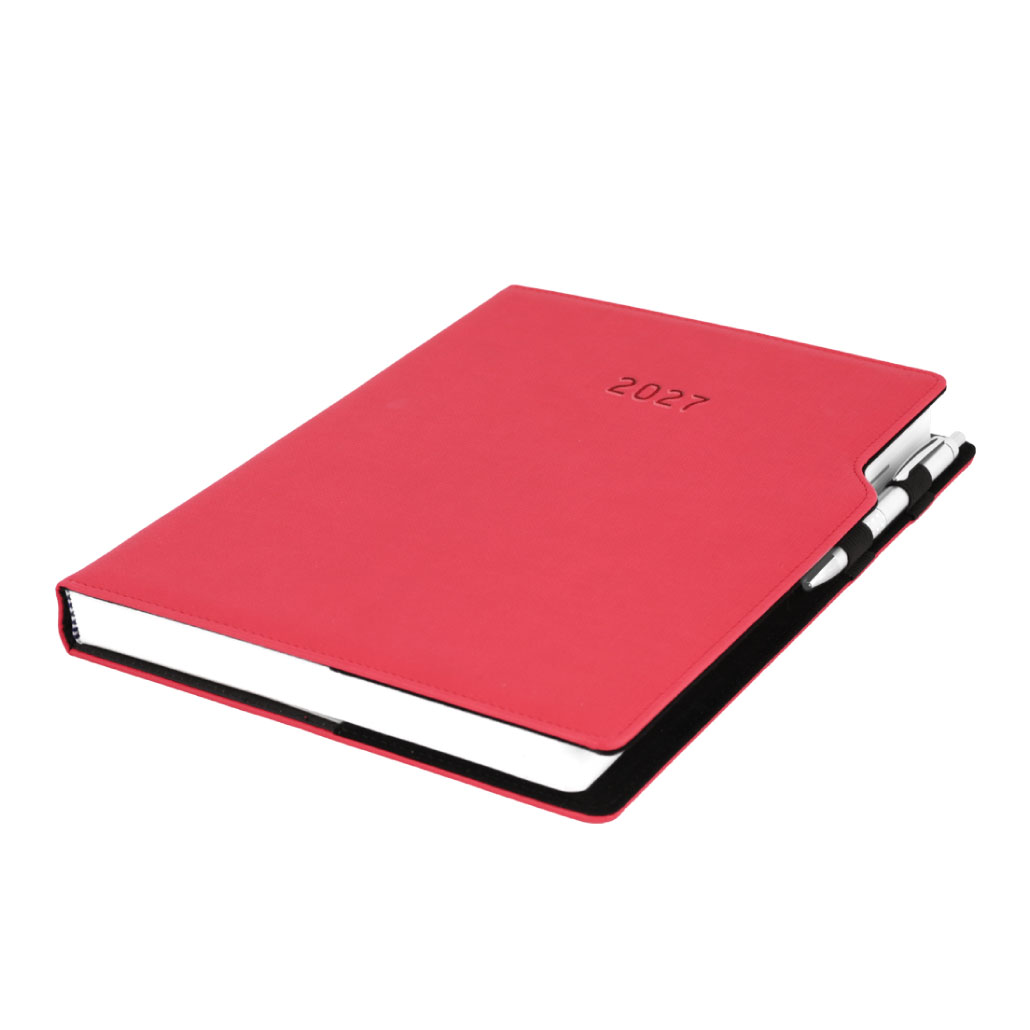 Diář GEP s propiskou denní A4 2027 polský - červená pastelová