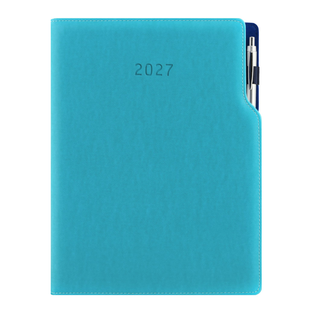 Diář GEP s propiskou denní A4 2027 polský - tyrkysová/modrý vnitřek
