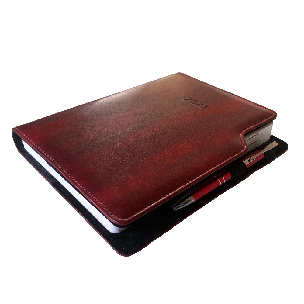 Diář GEP s propiskou denní A5 2023 český - bordó žíhaná