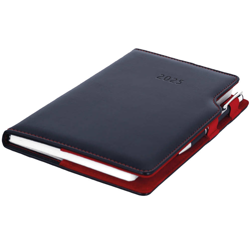Diář GEP s propiskou denní A5 2025 polský - černá/červený vnitřek