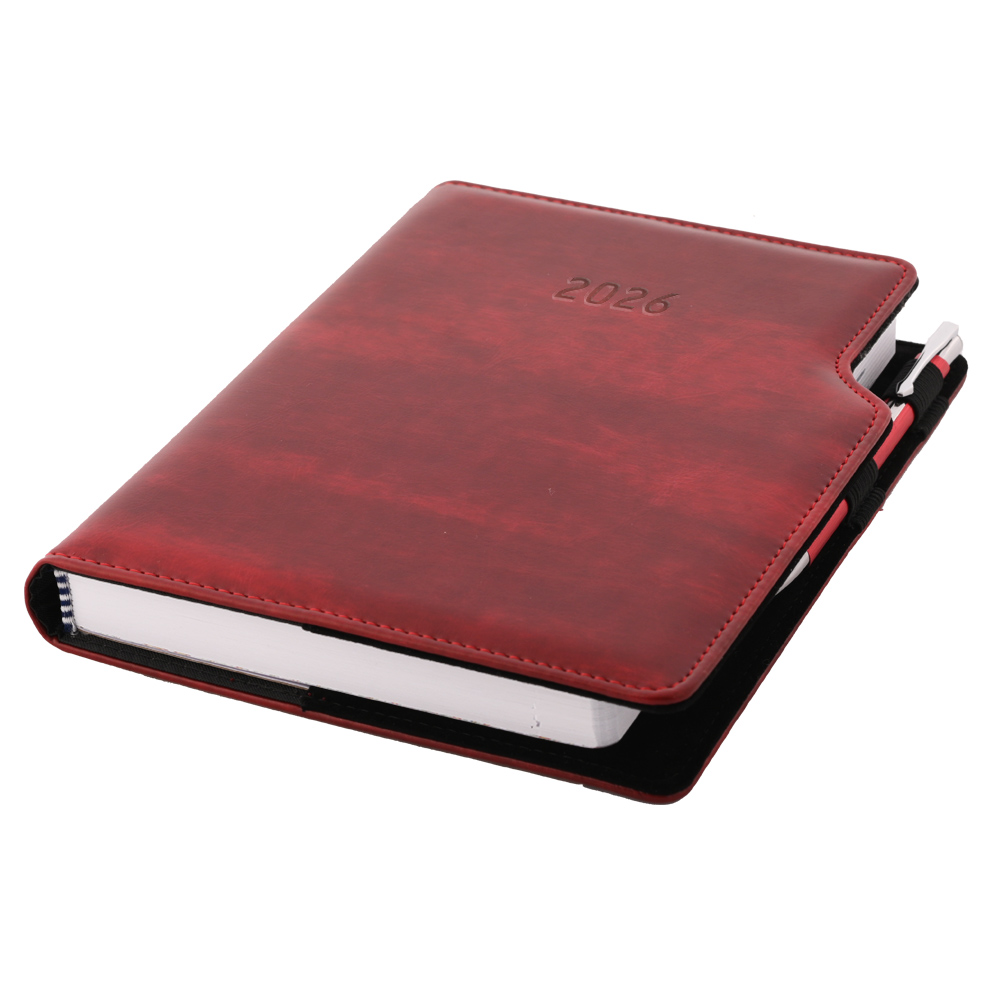 Diář GEP s propiskou denní A5 2026 polský - bordó žíhaná