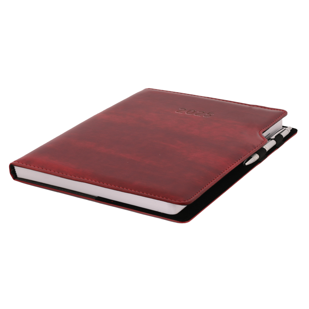 Diář GEP s propiskou týdenní A4 2025 - bordó žíhaná