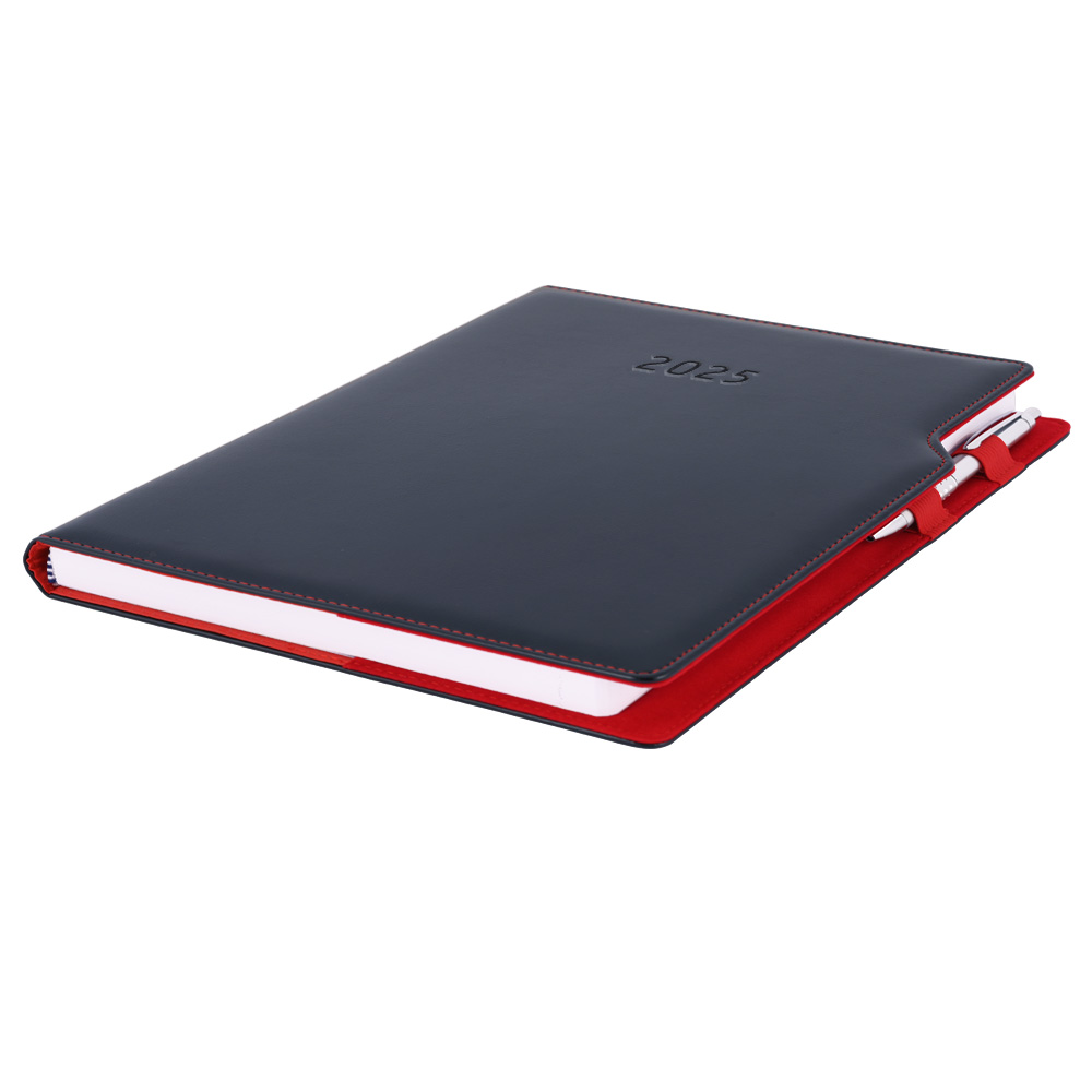 Diář GEP s propiskou týdenní A4 2025 - černá/červený vnitřek