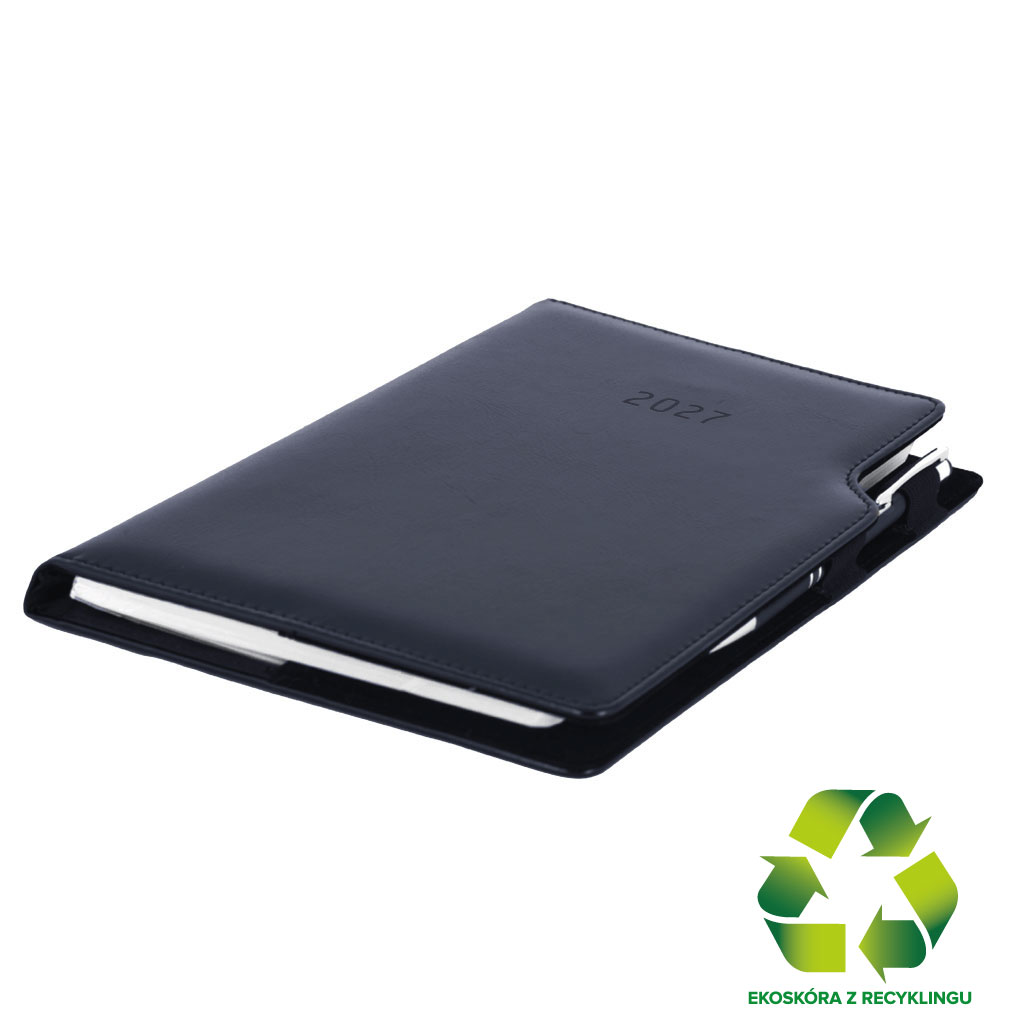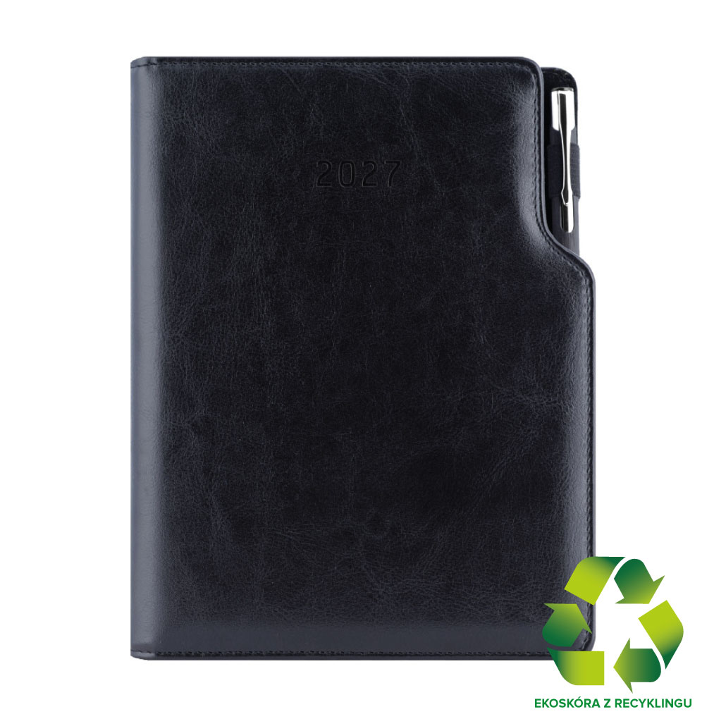 Diář GEP s propiskou týdenní B5 2027 polský - černá, černý vnitřek - recyklovaná koženka
