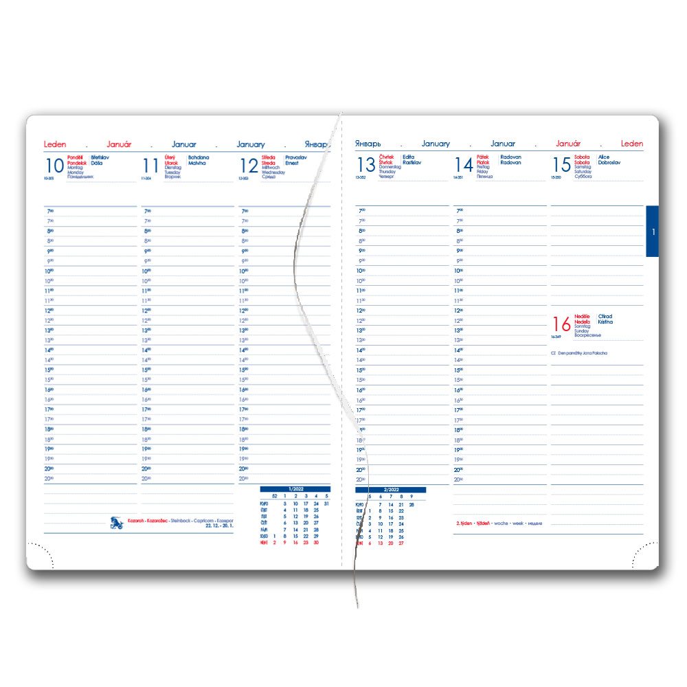 Diár obsahuje: okrúhle odtrhávací rožky,bílou záložku a propisku
