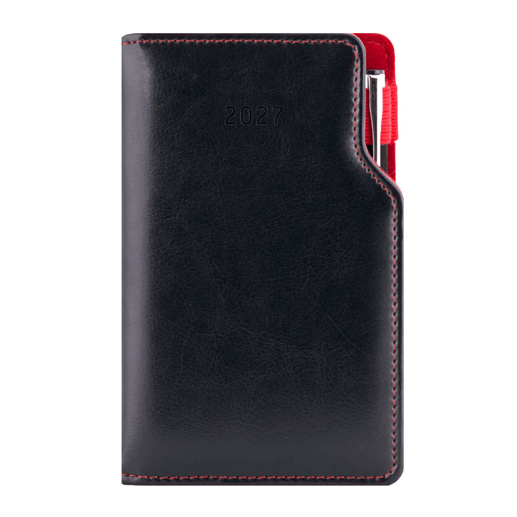 Diář GEP s propiskou týdenní kapesní 2027 polský - černá/červený vnitřek