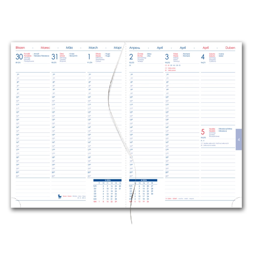 Diář obsahuje: kulaté odtrhávací rožky a bílou záložku