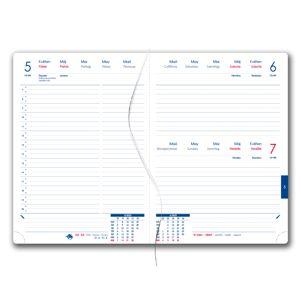 Diár obsahuje: okrúhle odtrhávací rožky,bílou záložku,