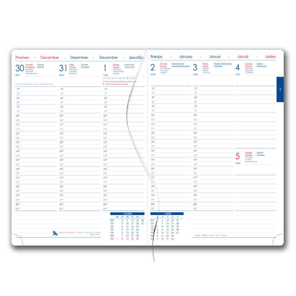 Diář POLY týdenní A5 2025 český - tmavě modrá