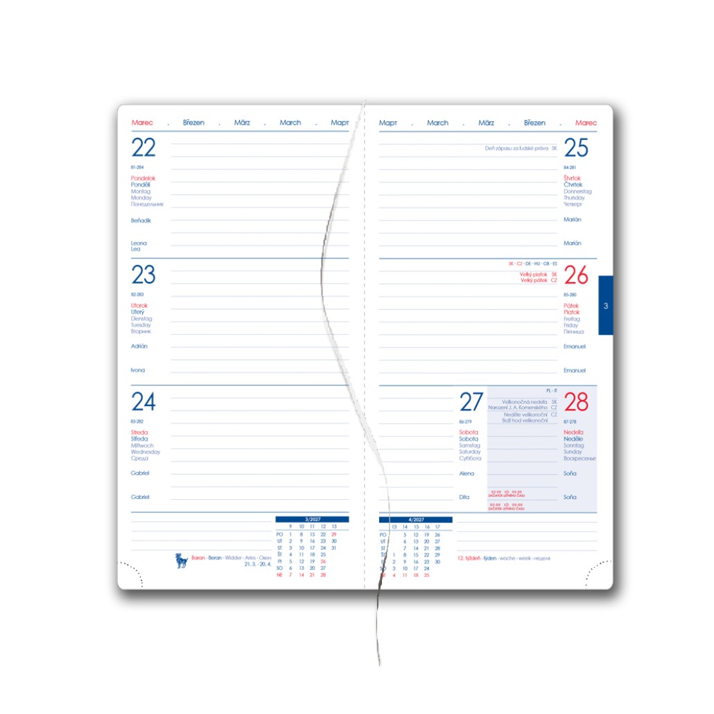 plánovací kalendář 2027, roční plánovací kalendář SK a CZ,