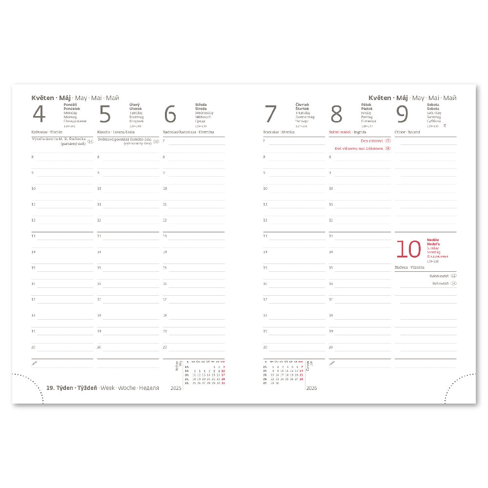 mezinárodní svátky, roční výhled, týdenní layout, adresář,