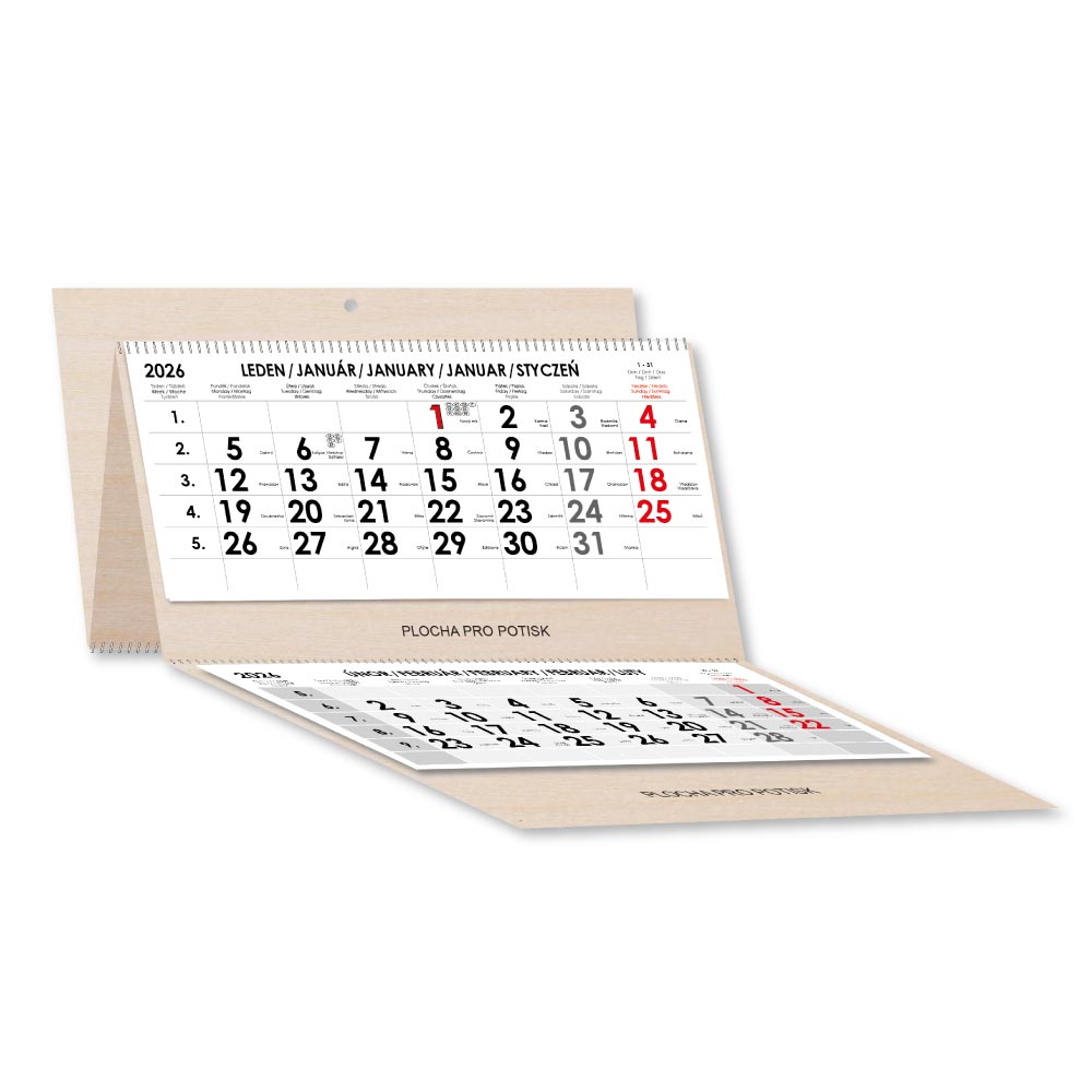 Dřevěný tříměsíční kalendář Trio Wood skládaný český se spirálou 2026 - šedý