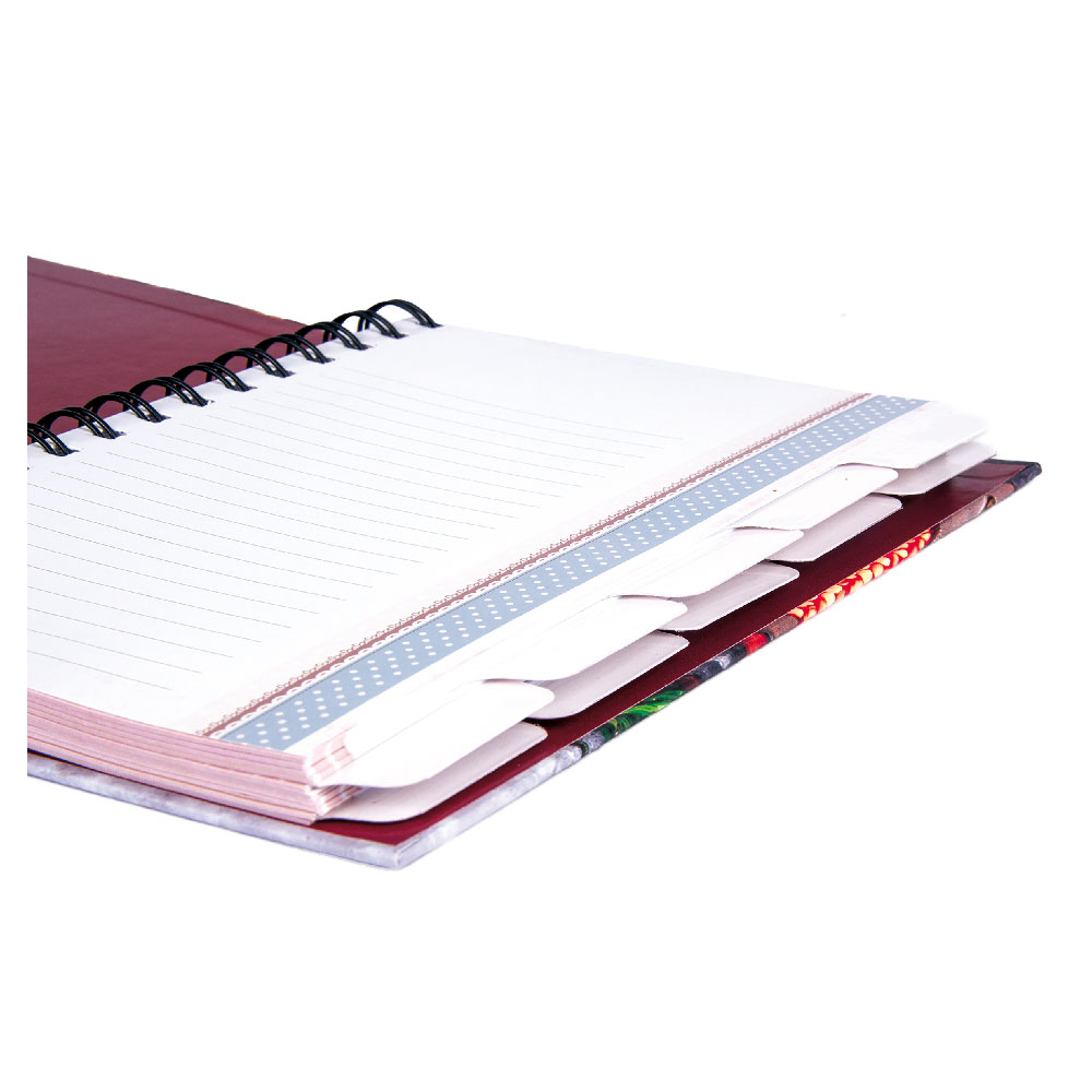 Vazba: kroužková vazba, pevné desky, mašlí připrevněná vařečka