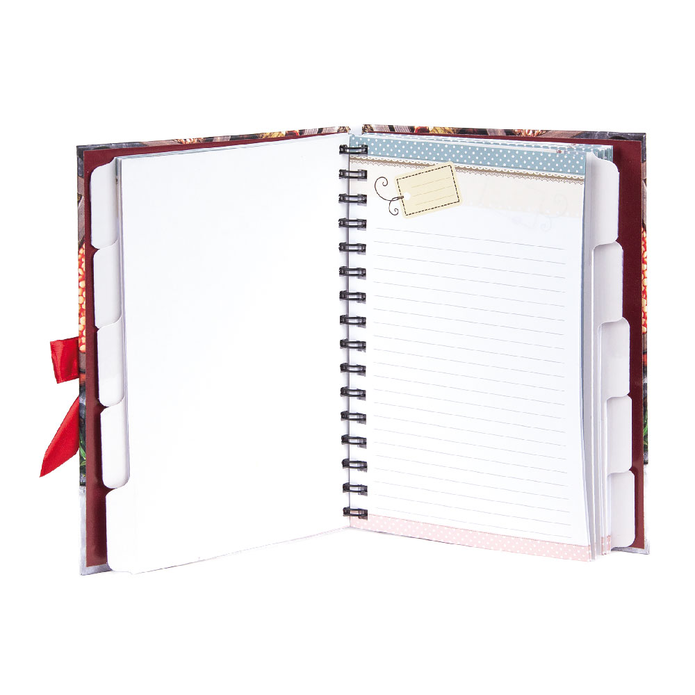 Vazba: kroužková vazba, pevné desky, mašlí připrevněná vařečka