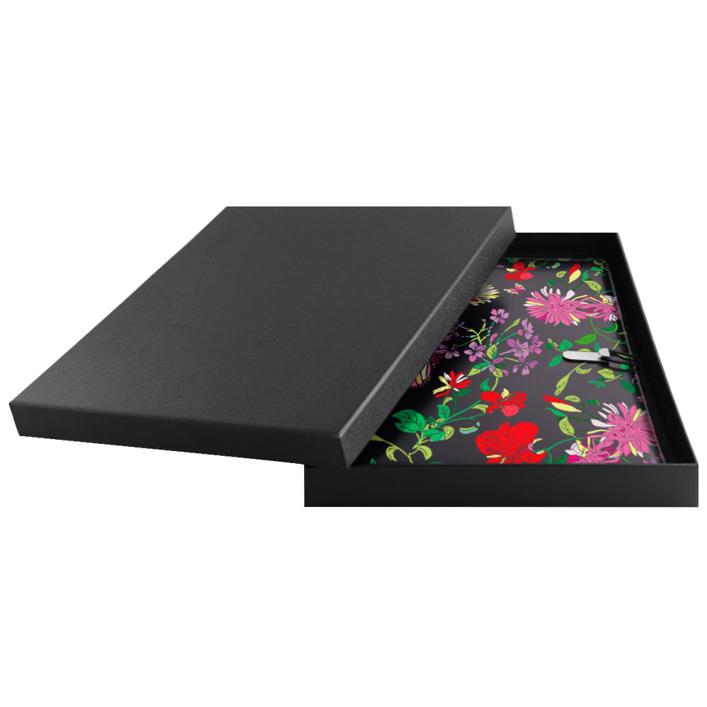 GEP konferenční desky na dokumenty v dárkové krabičce černé - květy s linkovaným blokem