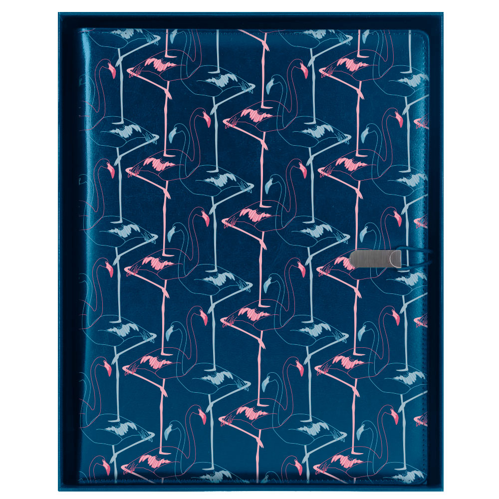 Konferenční desky GEP DESIGN v dárkové krabičce modré - Flamingo se čtverečkovaným blokem