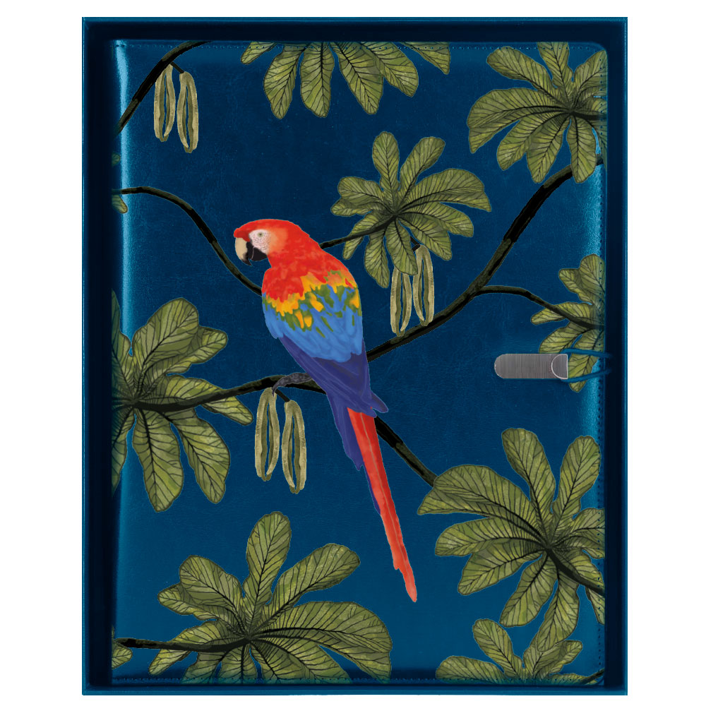 Konferenční desky GEP DESIGN v dárkové krabičce modré - Papoušek s tečkovaným blokem