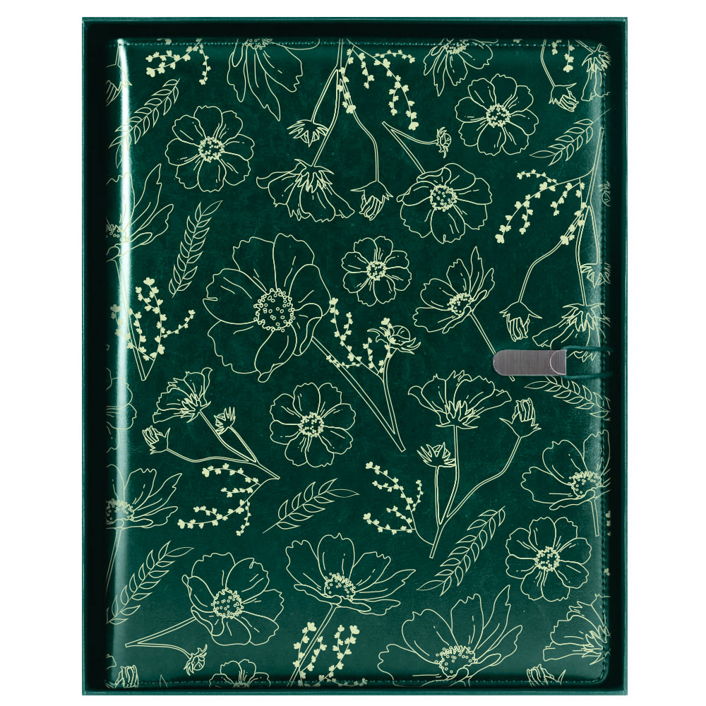 GEP konferenční desky na dokumenty v dárkové krabičce zelené - Květiny se čtverečkovaným blokem