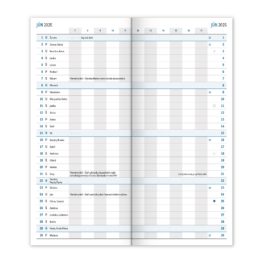 Diář obsahuje: přehledný kalendář 2025/2026/2025,