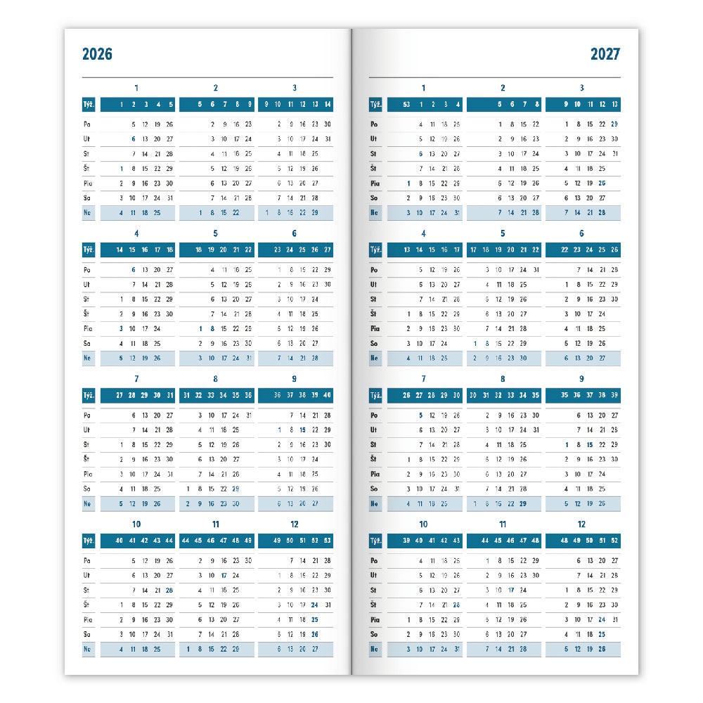 Diář obsahuje: přehledný kalendář 2026 a 2027,