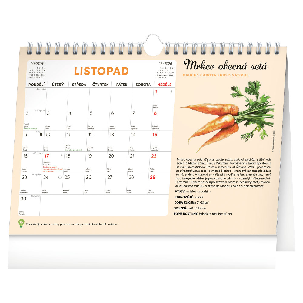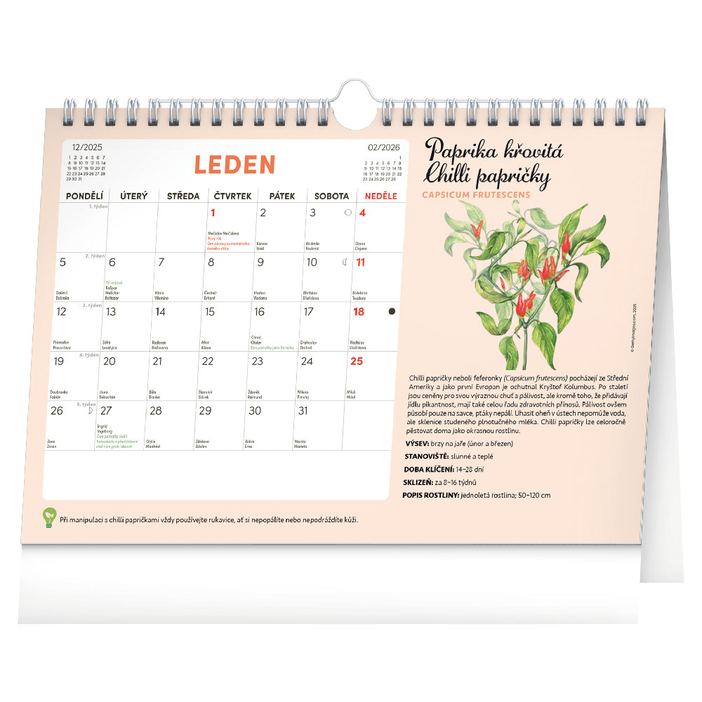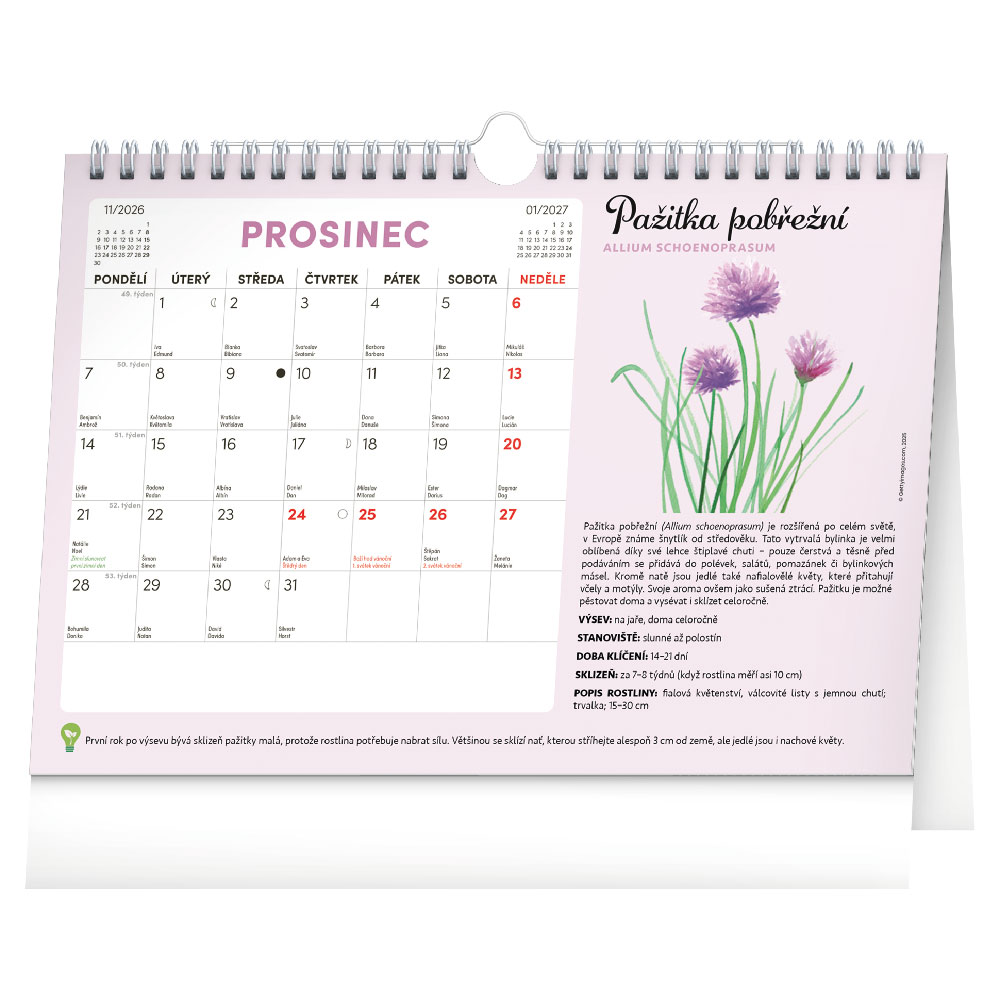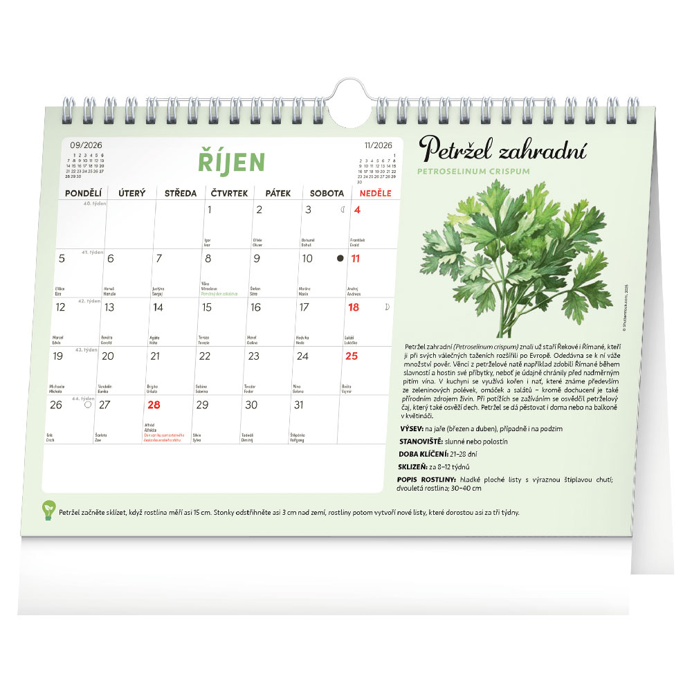 Rozsah kalendáře: 15 listů + 12 listů se semínky