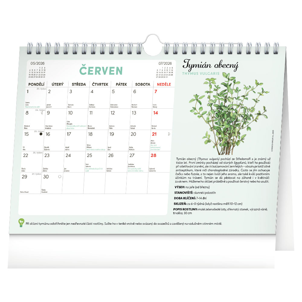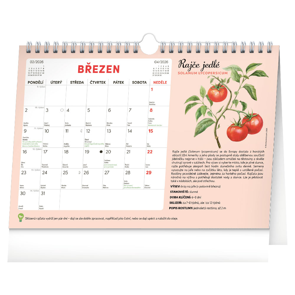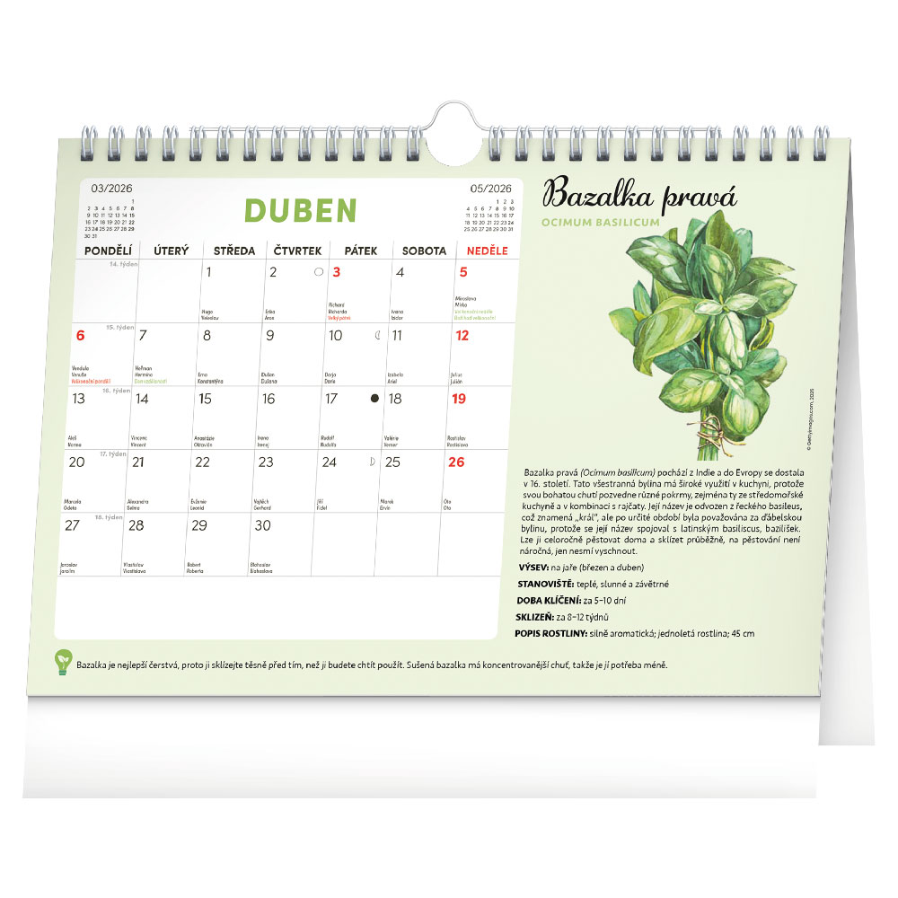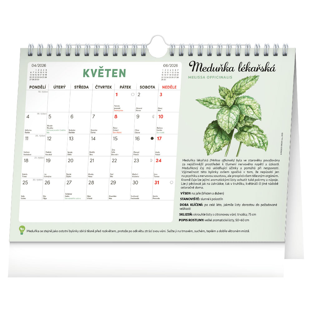 Možné použít jako stolní i nástěnný kalendář.