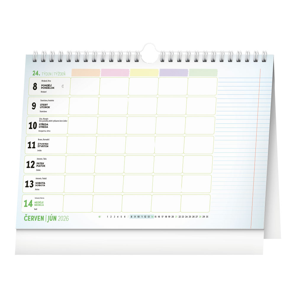 Nástěnný i stolní kalendář 2026 Týdenní rodinný plánovací s háčkem