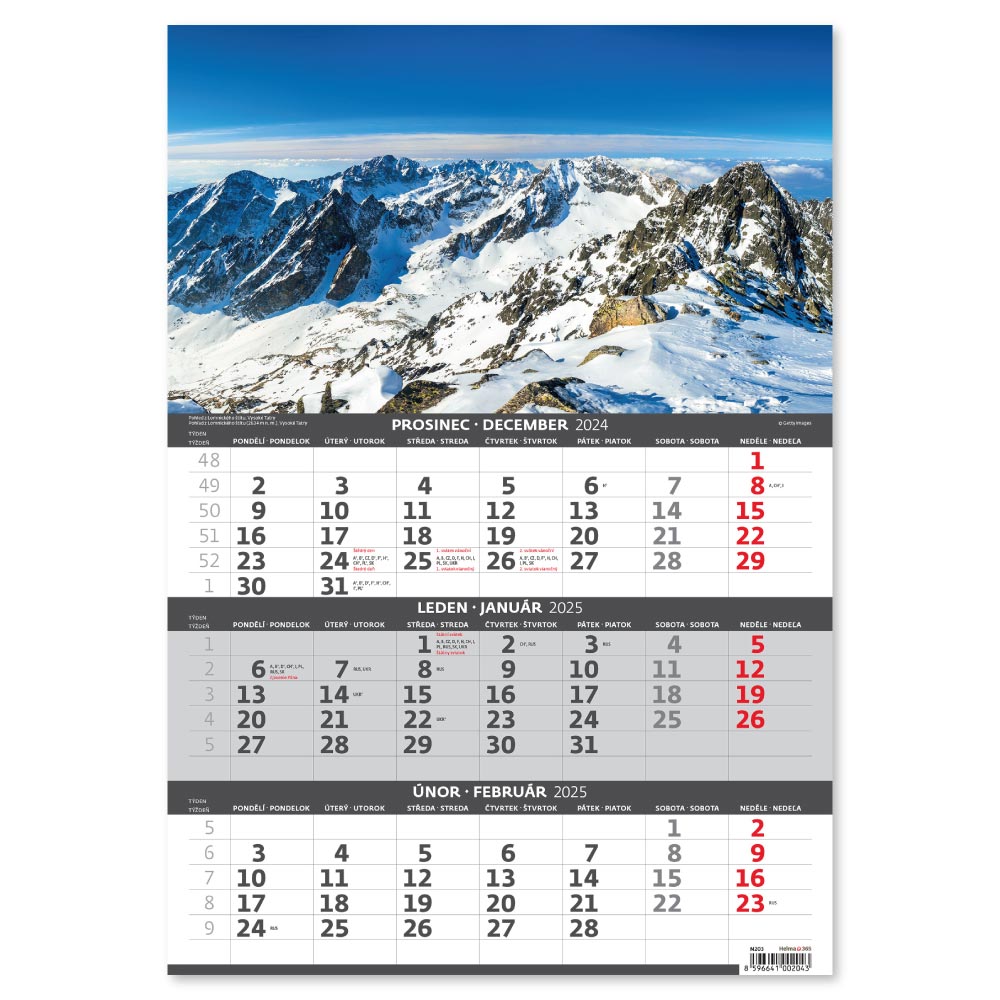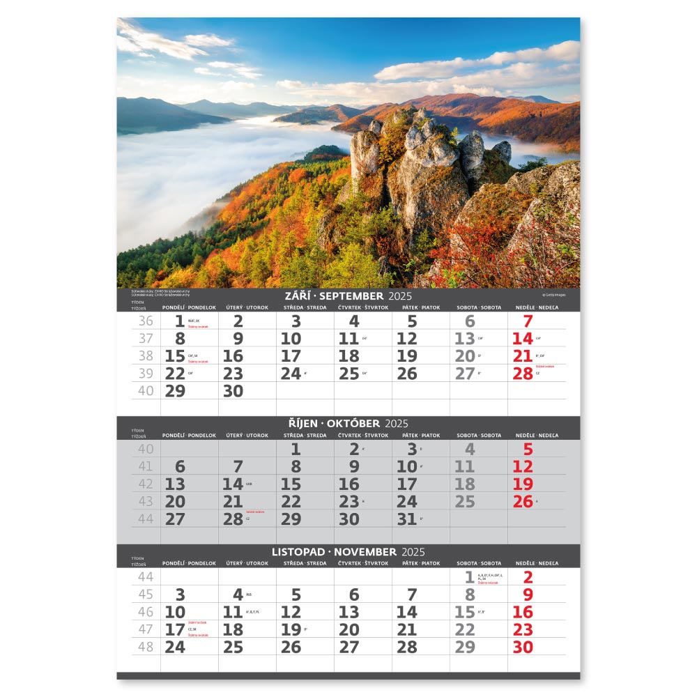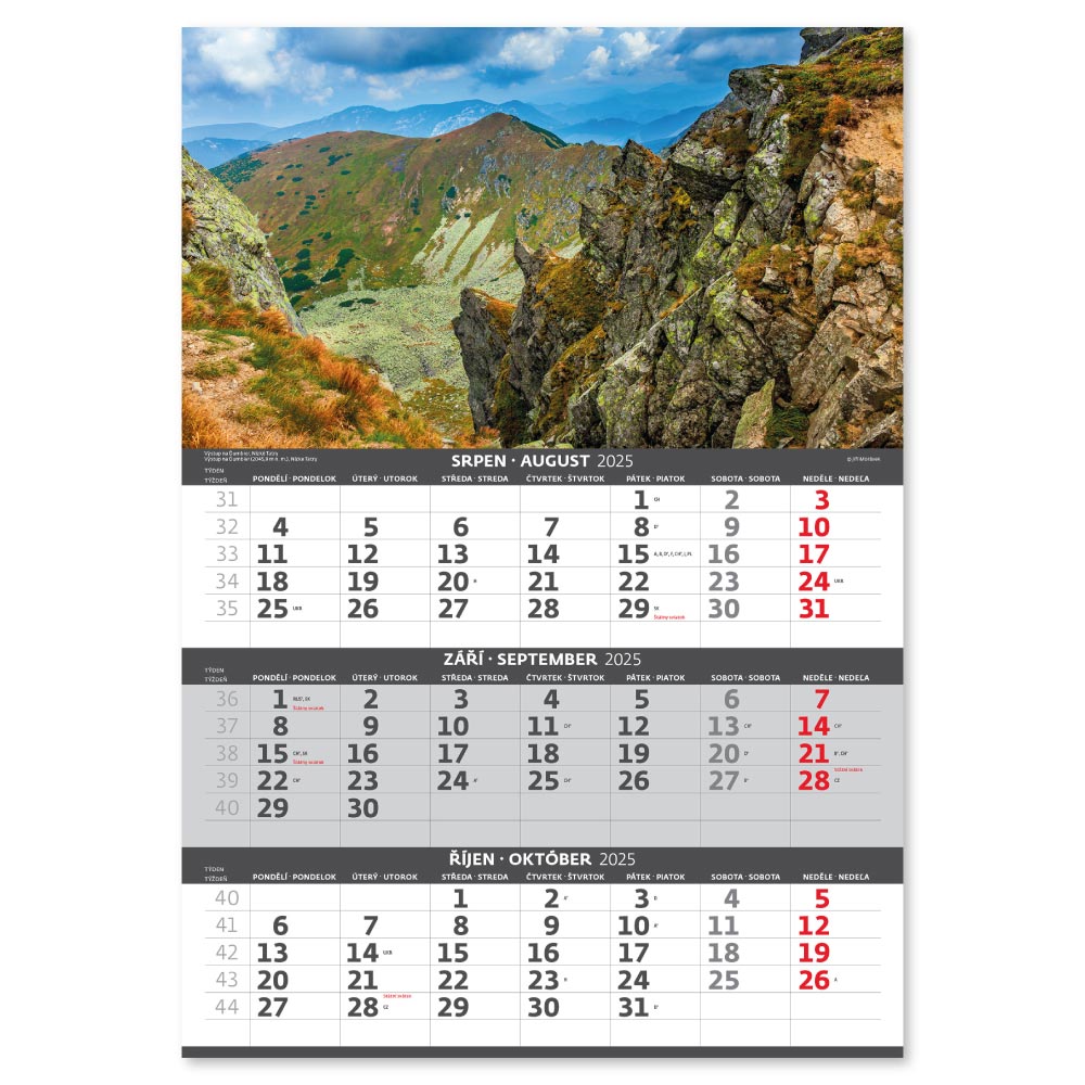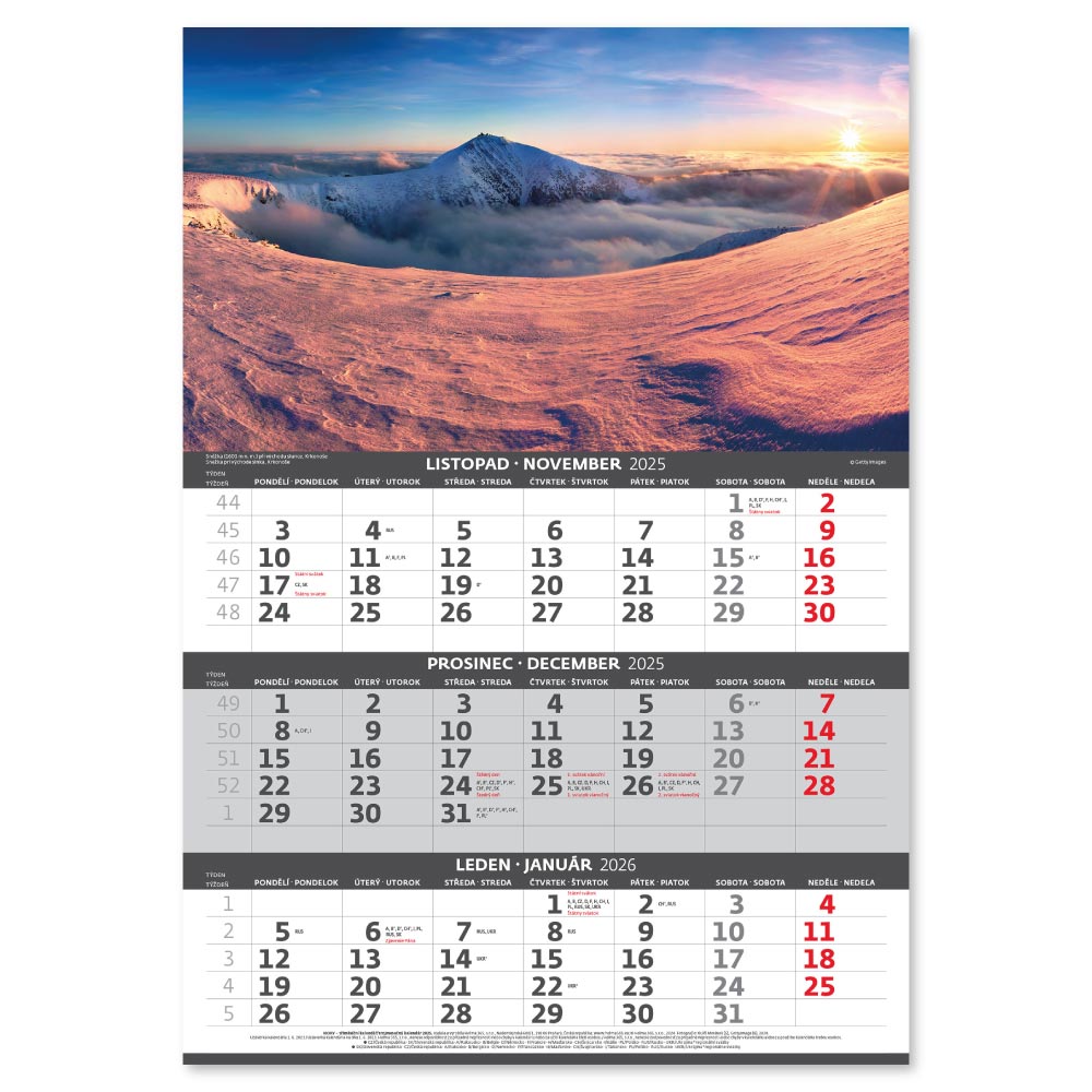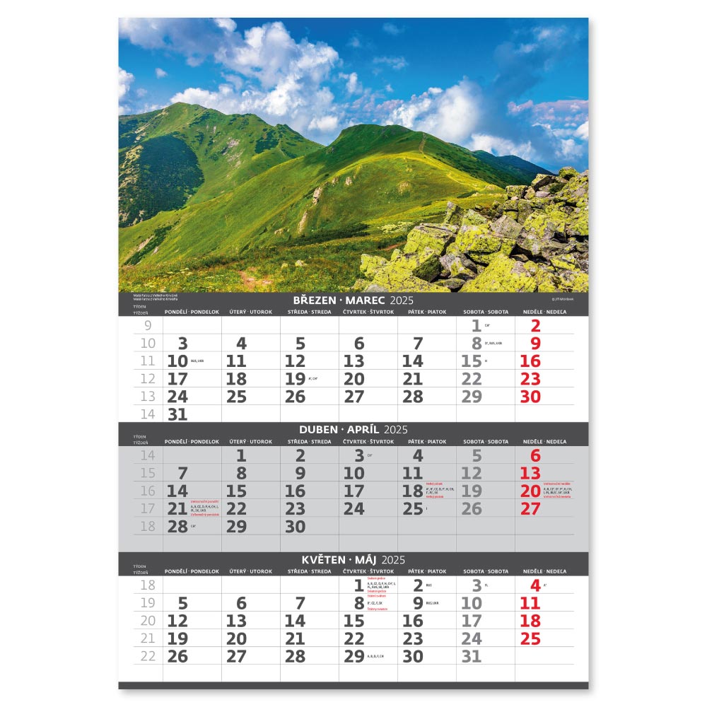 Nástěnný kalendář 2025 - Hory – 3měsíční/Hory – 3mesačné