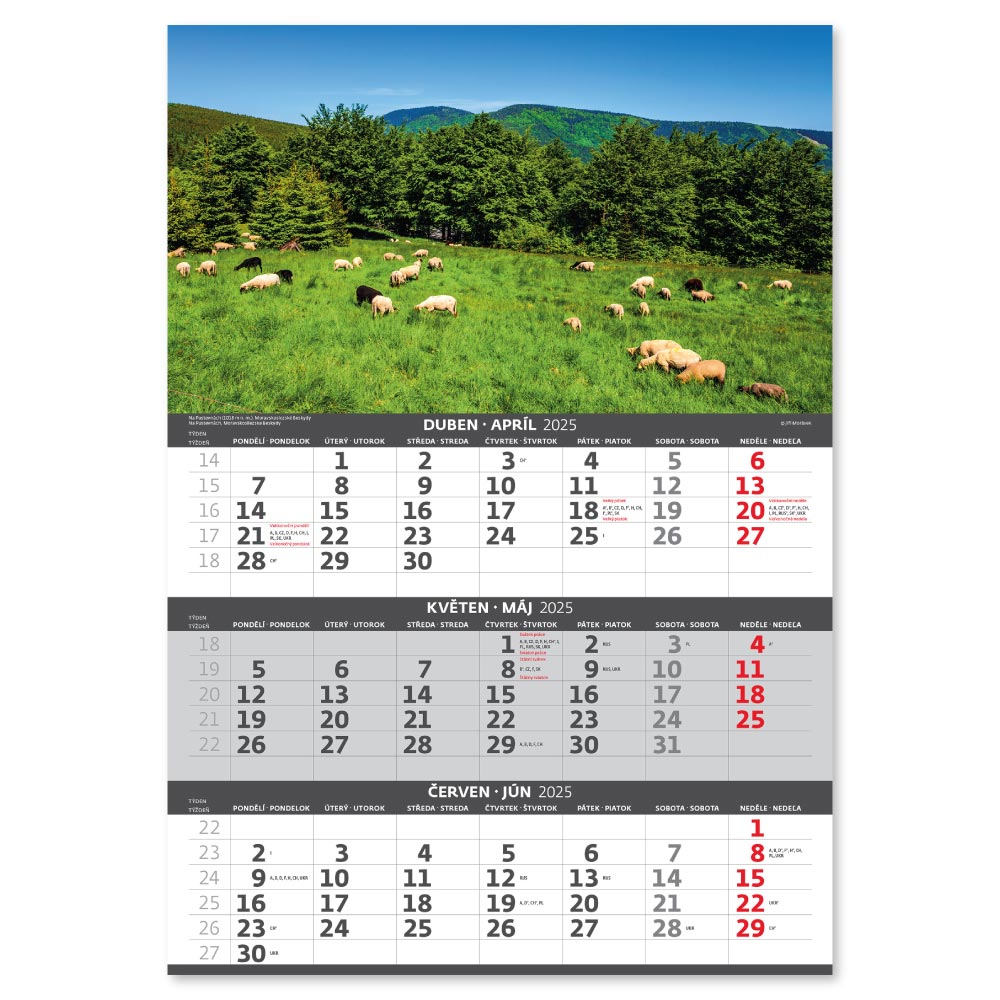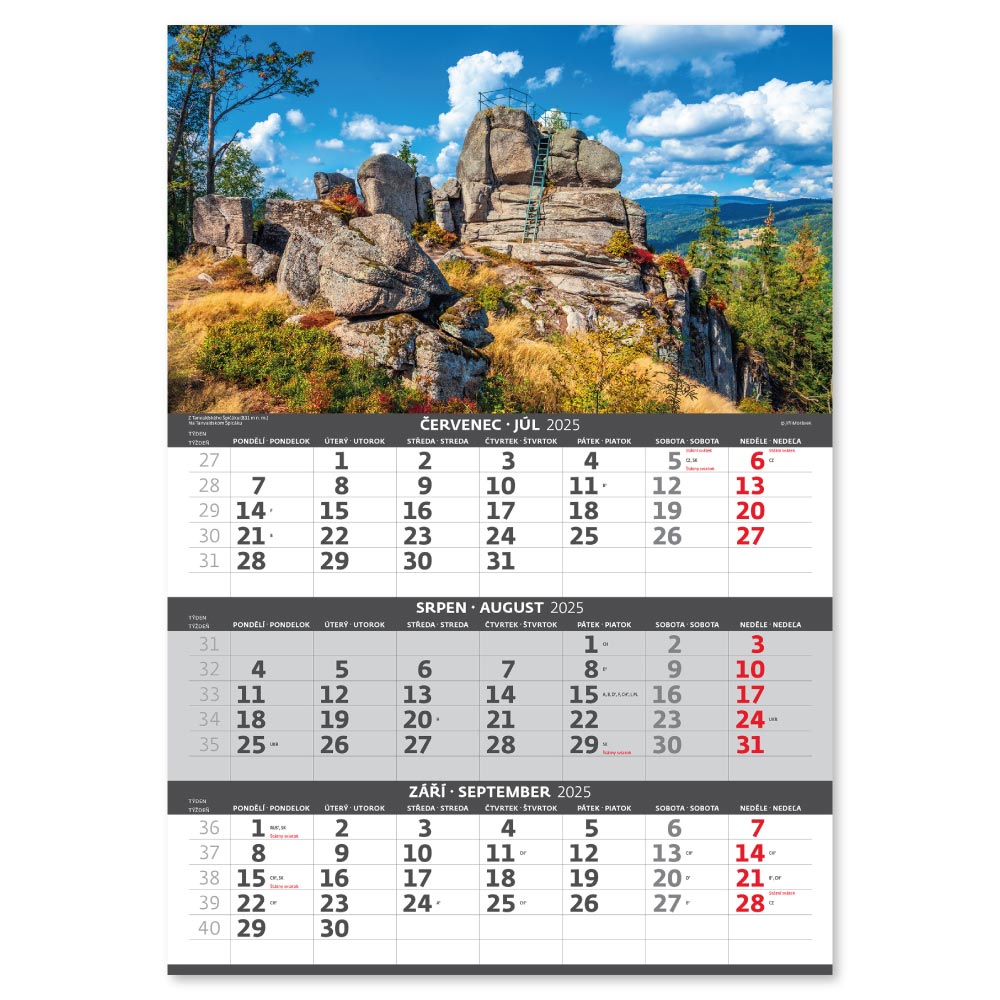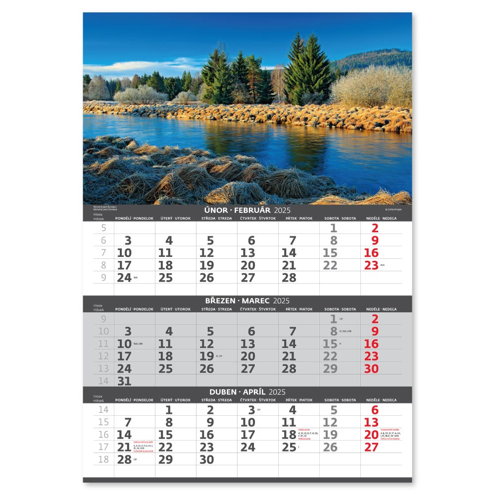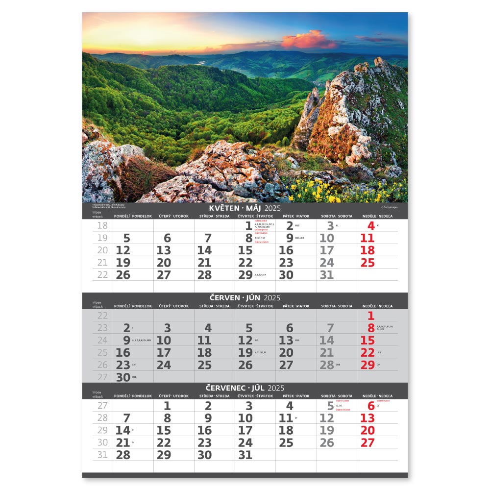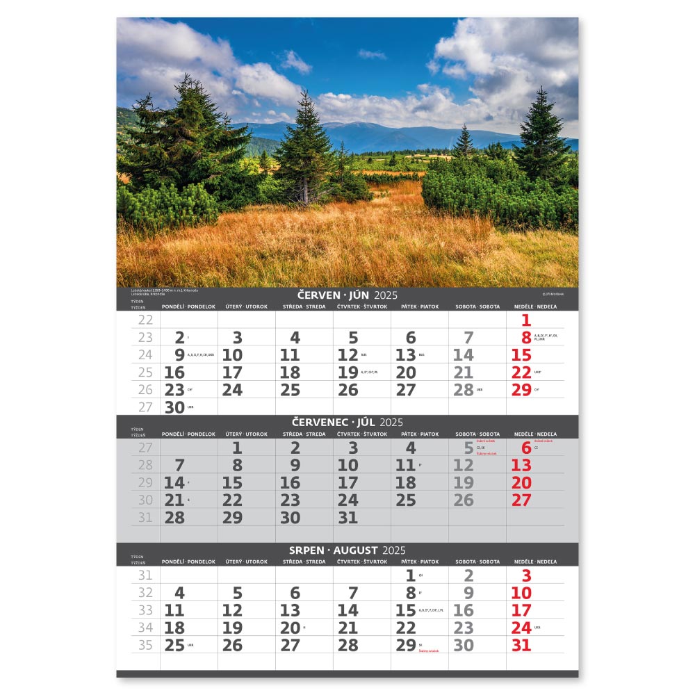 Nástěnný kalendář 2025 - Hory – 3měsíční/Hory – 3mesačné