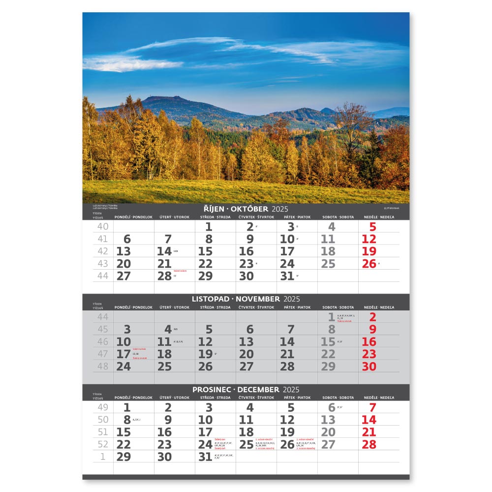 Kalendárium: CZ/SK tříměsíční se svátky vybraných evropských států