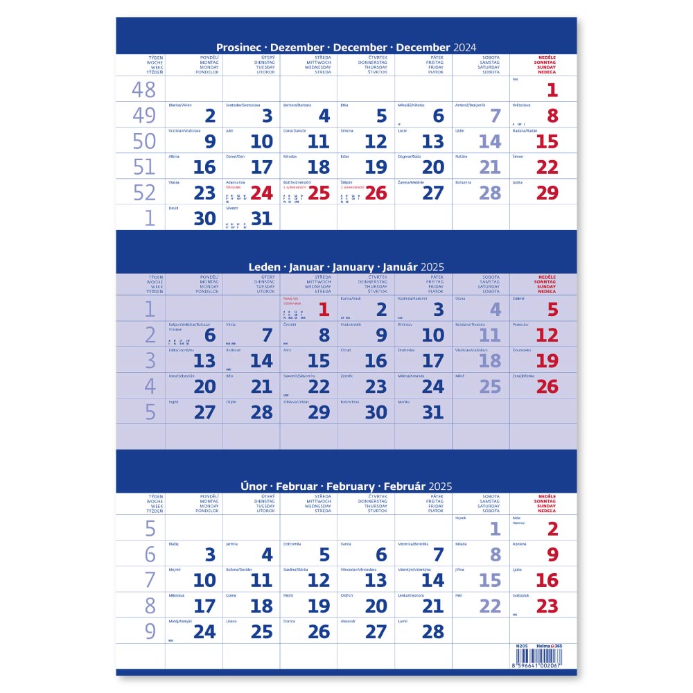 Nástěnný kalendář 2025 - Tříměsíční modrý