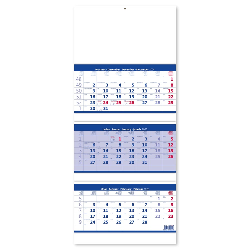 Nástěnný kalendář 2025 - Tříměsíční skládaný modrý